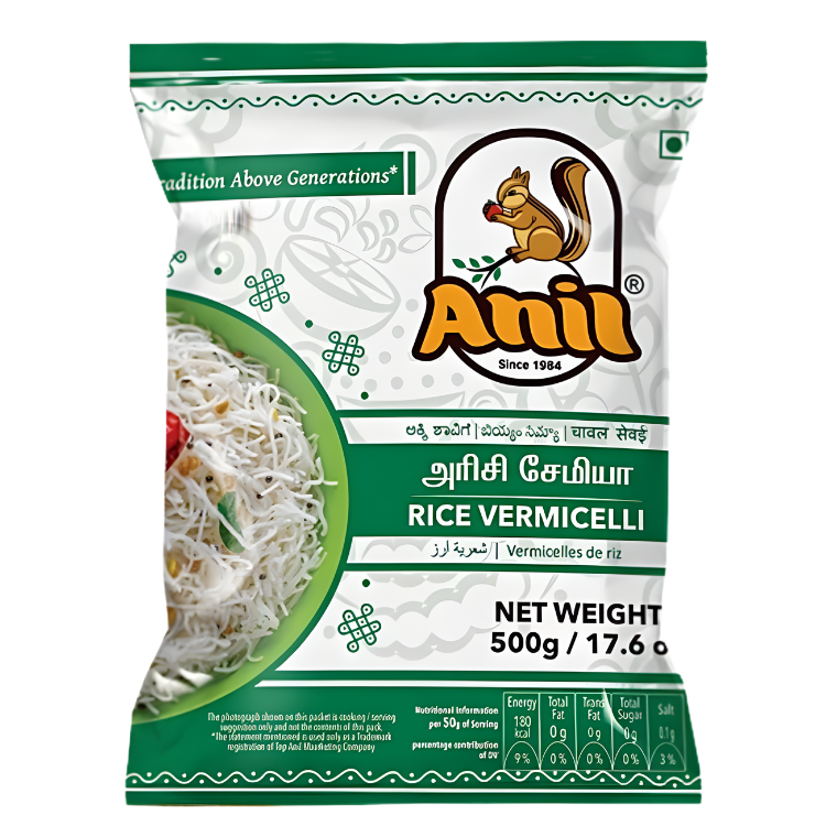 ANIL VERMICELLI 500G – RICE is made from high-quality rice, offering a light, smooth, and easy-to-digest alternative to regular wheat vermicelli. With its fine texture and consistent quality, it cooks quickly and delivers perfectly soft, non-sticky results.