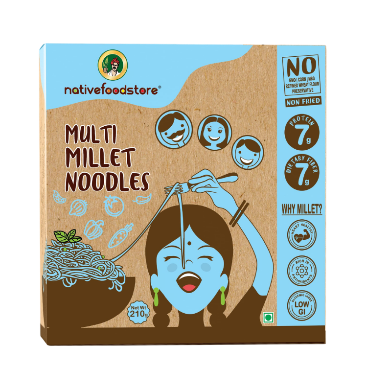 NATIVE FOOD STORE MILLET NOODLES 210G – MULTI MILLET is a wholesome and nutritious alternative to regular instant noodles. Made with a blend of carefully selected millets, this product delivers natural goodness, high fiber content, and balanced nutrition in every serving.